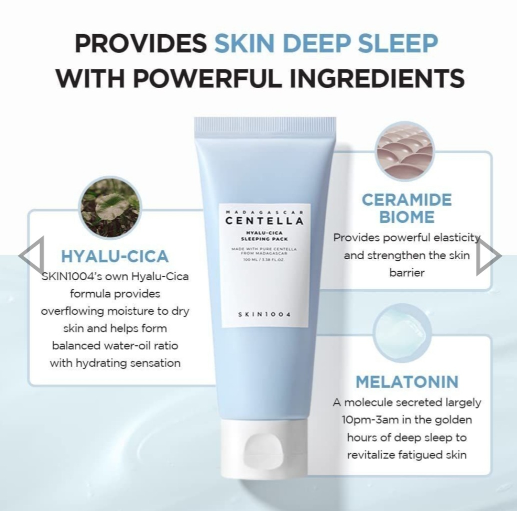 🩵این محصول یک ماسک خواب آبرسان عمیق تغذیه کننده و تسکین کننده از برند skin 1004 با عملکرد های اصلی زیر است :🌊 رطوبت رسانی و آبرسانی عمیق لایه های پوستی و جلوگیری از دهیدراتگی پوست 🌃تغذیه کنندگی، احیا کنندگی و انرژی دهندگی پوست در طول شب ✨ شفاف ، روشن ، شاداب کنندگی و درخشان کنندگی پوست 🛡 آنتی اکسیدان ، تقویت سد دفاعی و بهبود دهندگی بافت پوست در برابر محیط خشک ☁️ نرم کنندگی عمیق و حفظ لطافت پوست🍀🐯 اصلیترین ترکیب به کار رفته در این محصول ،39% عصاره سنتلا آسیاتیکا ، معروف به سیکا یا علف ببر است این گیاه از قدیمیترین گیاهان دارویی برای ترمیم و تسکین پوست استدارای خواص تسکیندهندگی ، التیامبخشی التهابات ، کاهش دما و قرمزی پوست ، کمک به ترمیم پوستهای آسیبدیده و دارای خاصیت آنتیاکسیدانی هستند🐳 3 نوع هیالورونیک اسید با سایز و وزن مولکولی متفاوت:به لایههای پوست نفوذ میکنند و باعث آبرسانی، حفظ و قفل شدن رطوبت درون پوست و تشکیل یک لایه محافظتی روی سطح آن میشود✨نیاسینامید (ویتامین B3):که با اثر روشن کنندگی پوست ، کمک به رفع لک ، رفع و چین و چروک ، تعدیل چربی و تقویت سد دفاعی پوست🛡پانتنول و سراماید NP :با اثرات ترمیمکنندگی و تقویت سد دفاعی پوست ، مرطوبکنندگی و تسکیندهندگی پوستعدد🌼🌿🍐🌱 عصارههای گیاهان و میوهای (آرتمیسیا، گلابی،زنبق، گل داوودی و پیچک و...) به تسکین، آبرسانی و یکنواختی بافت کمک میکنند.