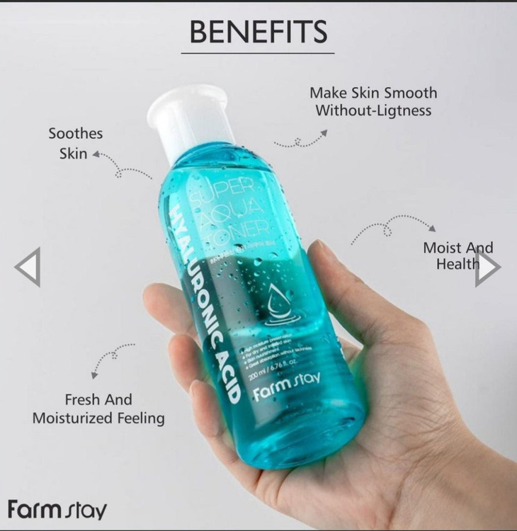 تونر آبرسان هیالورونیک اسید فارم استی یک تونر مرطوب کننده با اسید هیالورونیک است که با آن به آبرسانی و صاف کردن پوست کمک می کند.همچنین رطوبت را به صورت تازه و مرطوب نگه می دارد و به صاف شدن پوست شما بدون کشیدن کمک می کند.تونر هیالورونیک فارم استی پوست تحریک شده را در حین شستشو به سرعت آبرسانی می کند تا سلول های مرده و کشش پوست را به حداقل برساند و به مرطوب و صاف شدن آن کمک کند.روغن دانه، عصاره آشیانه سوئیفت و غیره ، لایه ای را تشکیل می دهند که به حفظ ابرسانی پوست کمک می کند.هیالورونیک اسید، یک ماده مرطوب کننده طبیعی که 1000 برابر وزن خود رطوبت را جذب و ذخیره می کند، و به حفظ رطوبت و سلامت پوست برای مدت طولانی کمک می کند. ترکیبات اصلی تونر هیالورونیک فارم استی:آمینو اسیدها، نیاسینامید و عصارههای گیاهیحاوی هیالورونیک اسیدهای متعدد و چندگانه(5 نوع)جذب سریع و هیدراتاسیون فوق العاده عالیمحافظت در برابر اثرات منفی اشعه ماوراء بنفشرفع کامل خشکی، کم آبی و پوسته پوسته شدنبهبود چین و چروک و خطوط ریزافزایش خاصیت سفتی و استحکامروشن شدن لکههای تیره و کدرکنترل ترشح سبوم و چربی