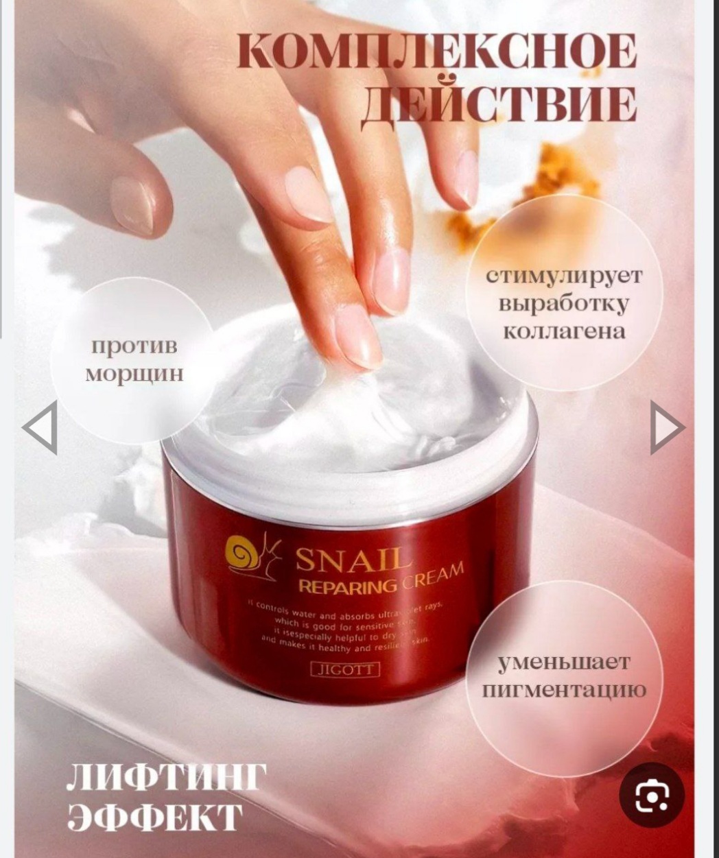 Jigott Snail Repairing Cream این محصول یک کرم چند کاره ابرسان ترمیم کننده، التیام بخش و مرطوب کننده پوست است.این کرم پوست کدر را که خاصیت ارتجاعی خود را از دست داده است، بازیابی می کند و تظاهرات مرتبط با افزایش سن را کاهش می دهد (چین و چروک و شلی پوست "مربوط به سن").فیلتر موکوس حلزون (موسین) اثر بازسازی کننده قوی روی سلول های پوست دارد.عصاره مخاط حلزون دارای اثر جوان سازی است و تولید کلاژن و الاستین را تحریک می کند.همچنین موسین حلزون رنگدانه ها را کاهش می دهد و اثرات ضد التهابی و بهبود زخم دارد.حاوی نیاسینامید که به نوسازی سلولی پوست بالغ کمک می کند و پوست را شاداب تر و کشسان تر می کند و عصاره آلوئه ورا ظاهری سالم و درخشان به پوست می بخشد.به عنوان آخرین مرحله در مراقبت از پوست استفاده کنید. مقدار کمی از کرم را روی صورت و گردن بمالید، کرم را با حرکات ملایم روی سطح پوست پخش کنید.